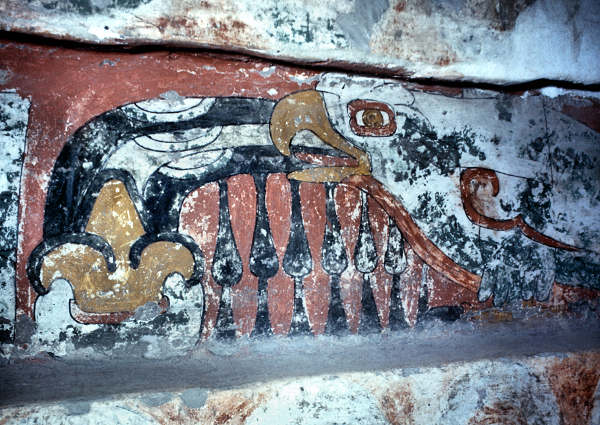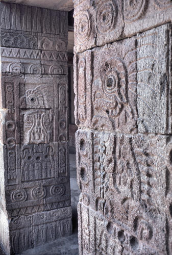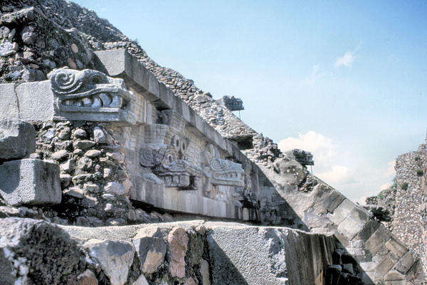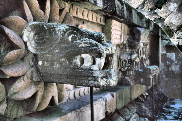 ![]() Above and below: details of carvings at the Temple of Quetzalcoatl |