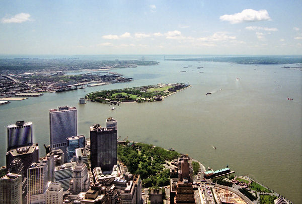 ![]() Looking SOUTH EAST are Ellis Island and Liberty island |