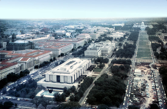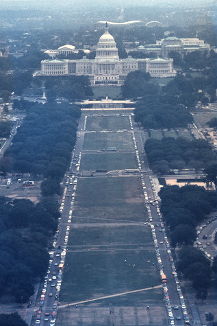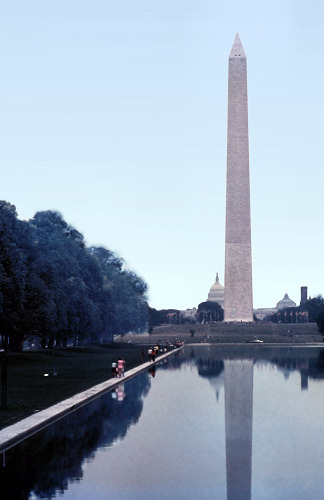 ![]() Looking east from the monument: the National Mall (flanked by Art Galleries and Museums) leading to the U.S. Capitol |