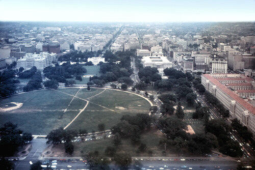 ![]() Looking north from the monument: the White House (middle left), and Treasury Building (middle right) |