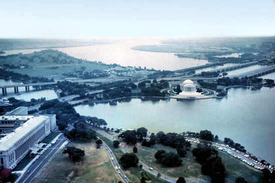 ![]() Looking south from the monument: the Potomac River and the Jefferson Memorial (middle right) |