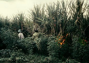 Firing sugar cane prior to cutting |