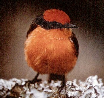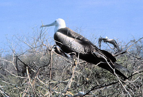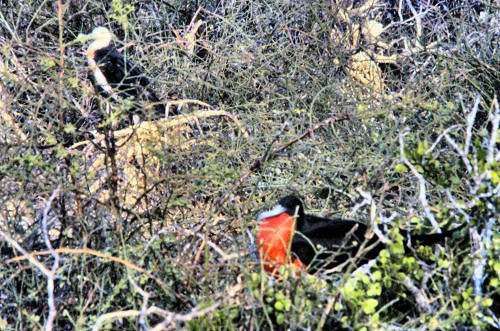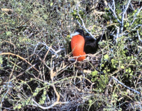 ![]() The male Frigate Birds blow up their red pouches to attract the females |
