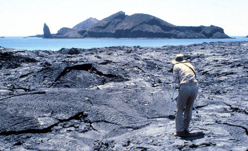 ![]() Looking over a lava field to Isla Bartolome and Pinnacle Rock |