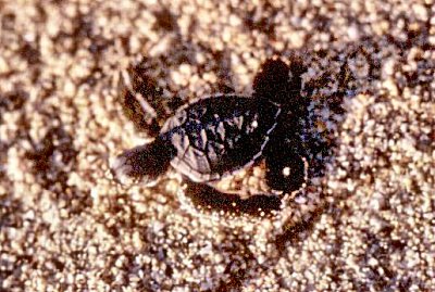 Green Sea Turtle baby just leaving its egg to try and get to the sea |