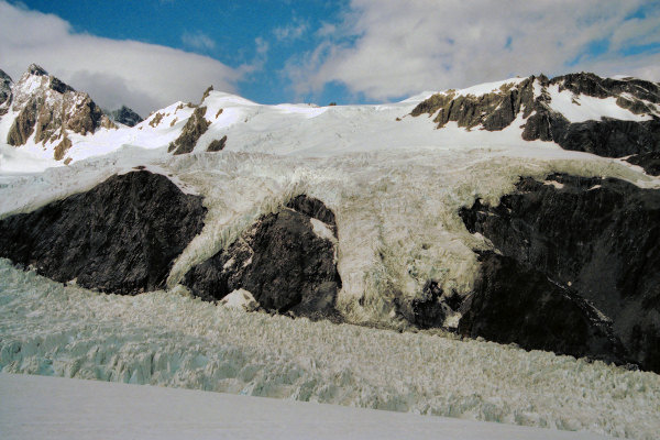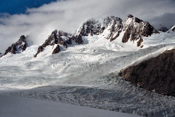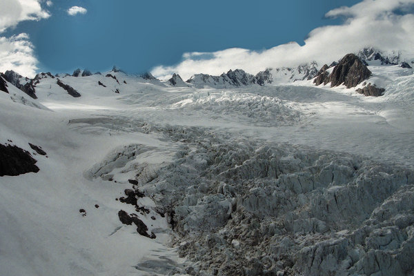 glaciers, Fox Glacier falls 2,600m on its 13km journey from the
