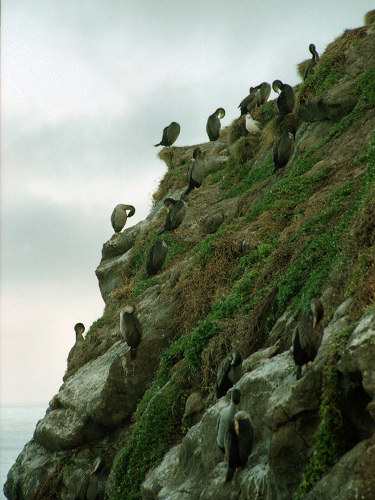 ![]() Spotted Shags on the cliff faces of the Otago Peninsula |
