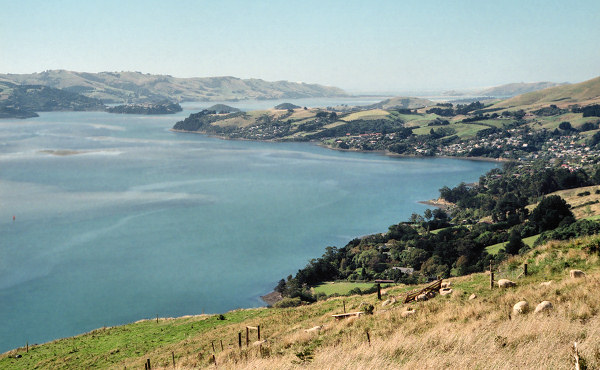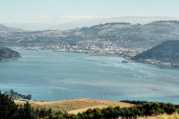 ![]() Looking to the left from our viewpoint: Dunedin and the beautiful Otago Harbour |