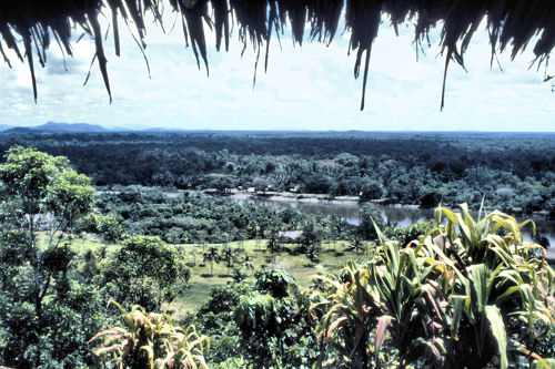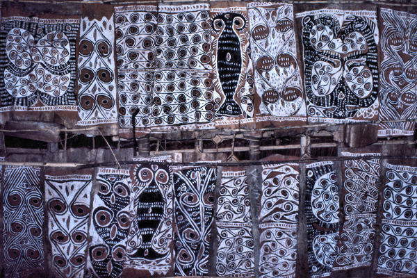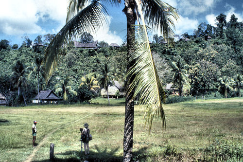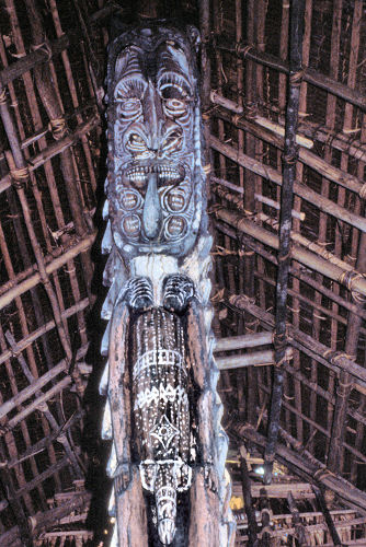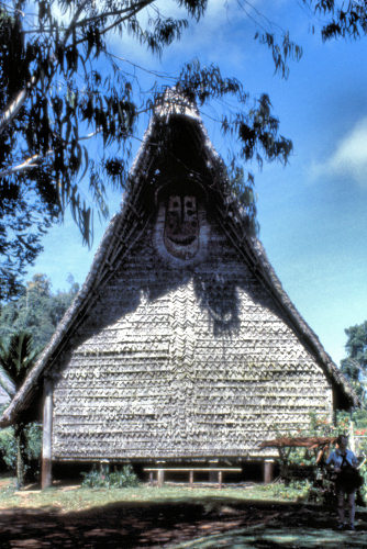 ![]() Inside the tourist lodge; it is constructed a bit like a village "Men's House" |
