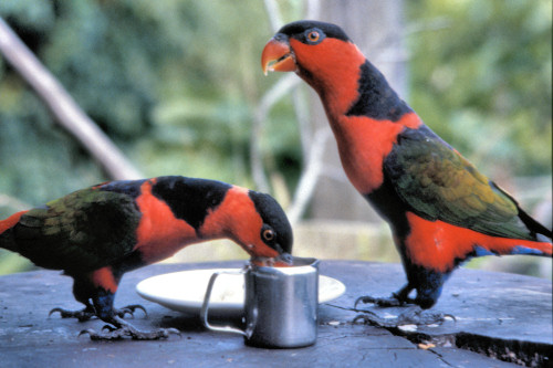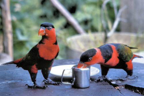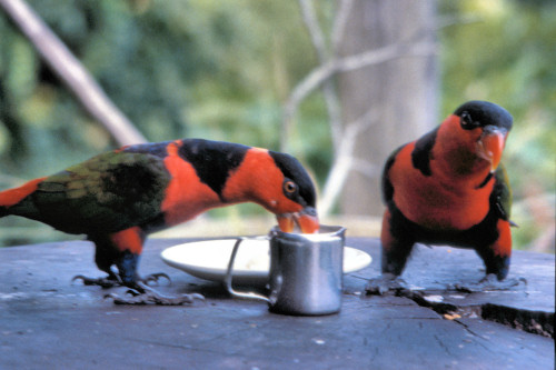 ![]() Black-capped Lorikeets are fed at the lodge - and below |