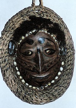 ![]() Mask from Sepic River area - clay on tortoise shell, and basketry |