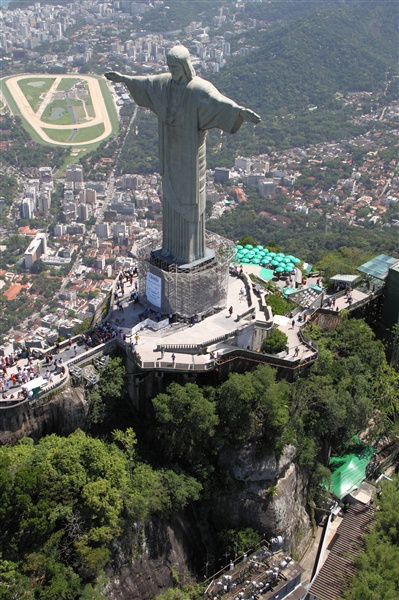 ![]() The 39 metre tall statue of Christ overlooking Rio is atop the 700 metre Corcovado mountain. It was completed in 1931 |