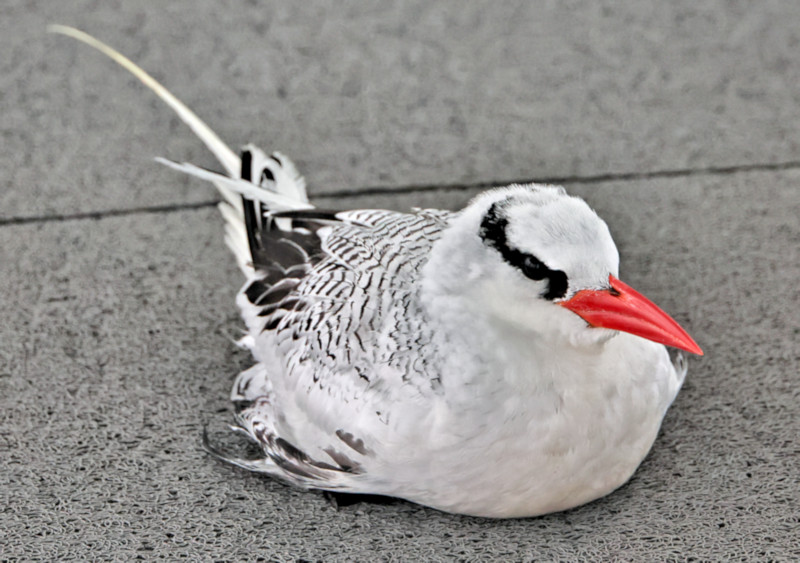 ![]() Red-billed Tropicbird juvenile, resting on our boat at Port Villamil, Isabela Island |